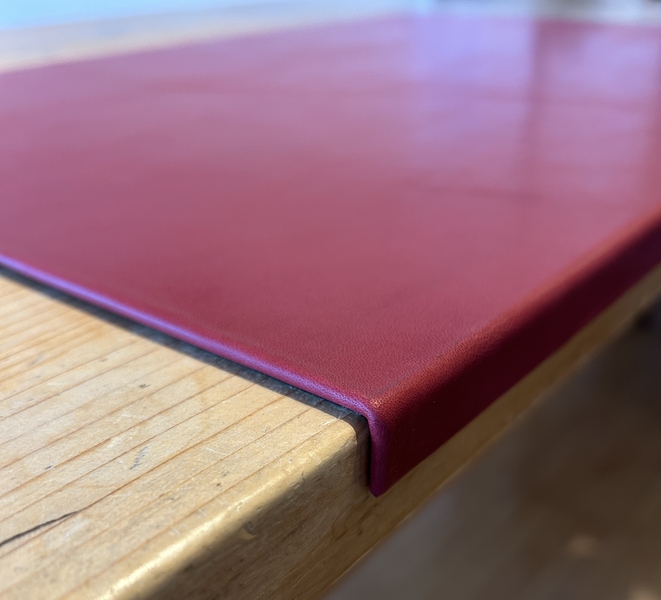 Nappa-Leder gedeckte Zurichtung (oberflächenbehandelt), im Leder VALCONA 'Kirsch', 65 x 45 x 1,5 cm, Kanten eingeschlagen